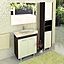 • Корпус из ДСП - благодаря ламинированному покрытию не разбухает даже в условиях повышенной влажности, долговечен, экологичен, устойчив к воздействию химикатов. Не выделяет вредных испарений в воздух. Идеально подходит для ванной комнаты.
