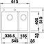 • В мойке две чаши - прямоугольные, глубиной 220 мм. Большая: 336,5х400 мм, малая: 185х400 мм.