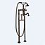 Напольный смеситель для ванны с поворотным изливом и ручным душем, с кронштейном для слива-перелива Cezares MARGOT-VDPS2-02-Bi Бронза ручки Белая