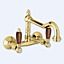 Кухонный смеситель настенного монтажа Cezares FIRST-LLP-03/24-Nc Золото 24 карат ручка Орех